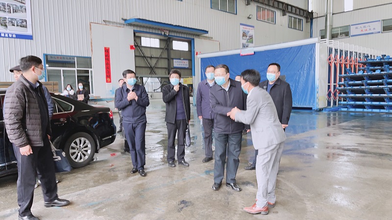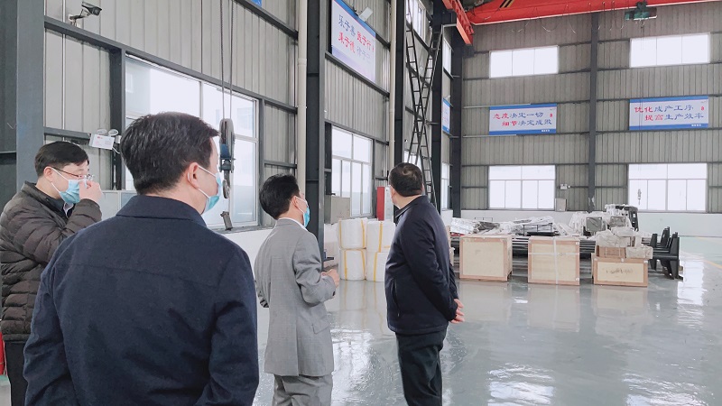 天行在线注册_天行(中国)机械董事长向领导介绍介绍项目概况,随后,大家一同参观车间的生产工艺以及半成品